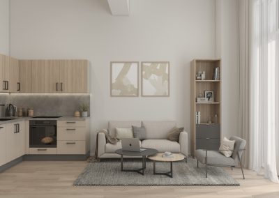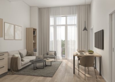 In einem ehrwürdigen Baudenkmal entstehen insgesamt 96 Ein- bis Drei-Zimmer-Appartements mit Wohnflächen von ca. 32 m² bis 66 m², die modernes und seniorengerechtes Wohnen ermöglichen. 24 der Wohnungen sind rollstuhlgerecht ausgebaut und bieten maximale Bewegungsfreiheit sowie höchsten Wohnkomfort. Hohe Decken, großzügige Fensterflächen und eine durchdachte Raumaufteilung schaffen eine helle, freundliche Atmosphäre mit besonderem Wohlfühlcharakter. Barrierefreie Duschbäder, Aufzüge sowie ein geräumiger Wohn-,